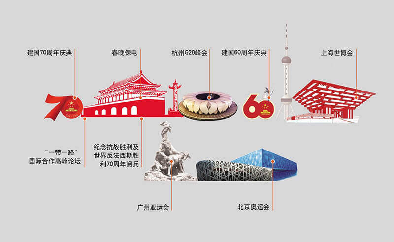 基于安全稳定的系统方案、及时完善的工程服务、灵活周密的现场指挥、专业合作的项目团队,佛山市聚可创科技有限公司成功完成建国70周年国庆庆典、“一带一路”国际合作高峰论坛、春晚保电、杭州G20峰会、建国60周年庆典、上海世博会、广州亚运会、北京奥运会等国家级重大政治活动保电工程,受到了业界一致肯定,佛山市聚可创科技有限公司亦被业界媒体冠以“保电专家”称号。
